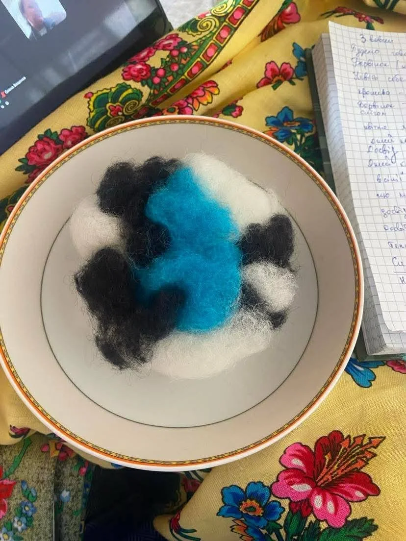 І через вовну на арттерапевтичній ресурсній зустрічі «Тепло-квітковий антистрес» 18 квітня Ольга Шендюх як досвідчена арттерапевтична провідниця вела нас шляхом м’якої трансформації , де через дотик, образ і процес учасниці дозволяли собі відчувати, створювати, змінювати і віднаходити свій ЦЕНТР
